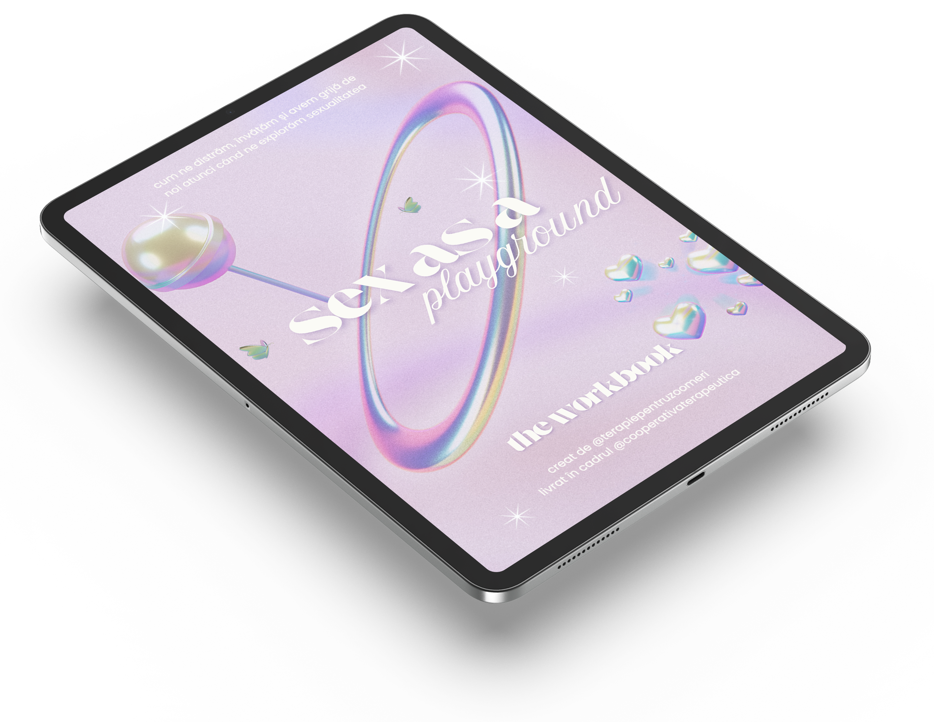 am gândit acest workbook ca un spațiu în care să putem vorbi despre sex, dar nu despre un sex care e rușinos, imoral, murdar, ci mai degrabă despre un sex care e curios, playful, explorativ și fun. informațiile, exercițiile și temele de reflecție de aici sunt pentru toată lumea – for the cishets, the gays, the theys, the monogamous, polyamorous, the ace and aro people, pentru orice om care vrea să se distreze cu propria sexualitate.